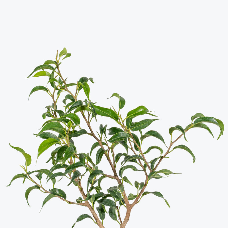 Rotate Ficus Alii every few weeks to promote even growth and maintain its symmetrical form. Wipe the long leaves occasionally to remove dust and keep their glossy look. Use a well draining, loamy potting mix and fertilize monthly during spring and summer with a balanced, diluted fertilizer. Avoid sudden temperature or light changes, which may cause temporary leaf drops.