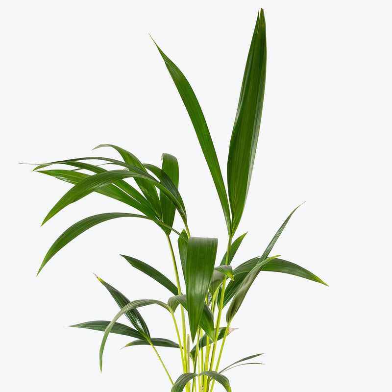 One of the easiest palms to care for, the Kentia Palm thrives on gentle neglect. Avoid overwatering — erring on the dry side is safer than keeping it too wet. They are sensitive to heavy fertilization, so use a very diluted, slow-release palm fertilizer no more than twice a year, typically in spring and summer. Dust the fronds regularly to keep them healthy and improve their ability to photosynthesize, especially since they can collect dust easily in indoor spaces. Repot only when the palm becomes severely root-bound — they actually prefer slightly tight quarters!