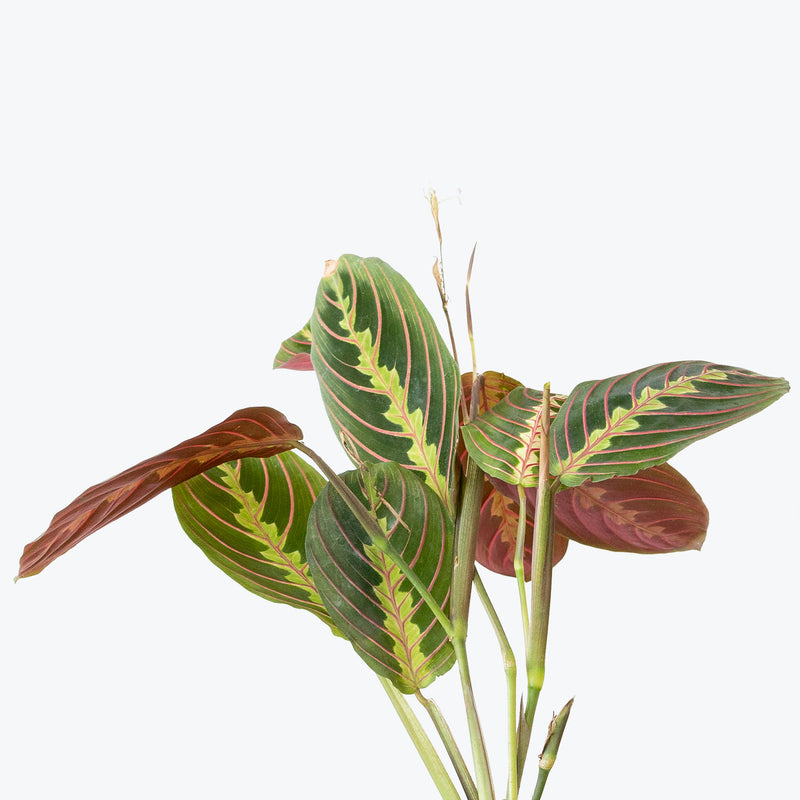 Keep Maranta Light Veins in well-draining soil, and avoid cold drafts or sudden temperature changes. Wipe the leaves occasionally to keep them dust-free and looking vibrant. Fertilize lightly every 4–6 weeks during spring and summer. Rotate the pot every couple of weeks for even growth.