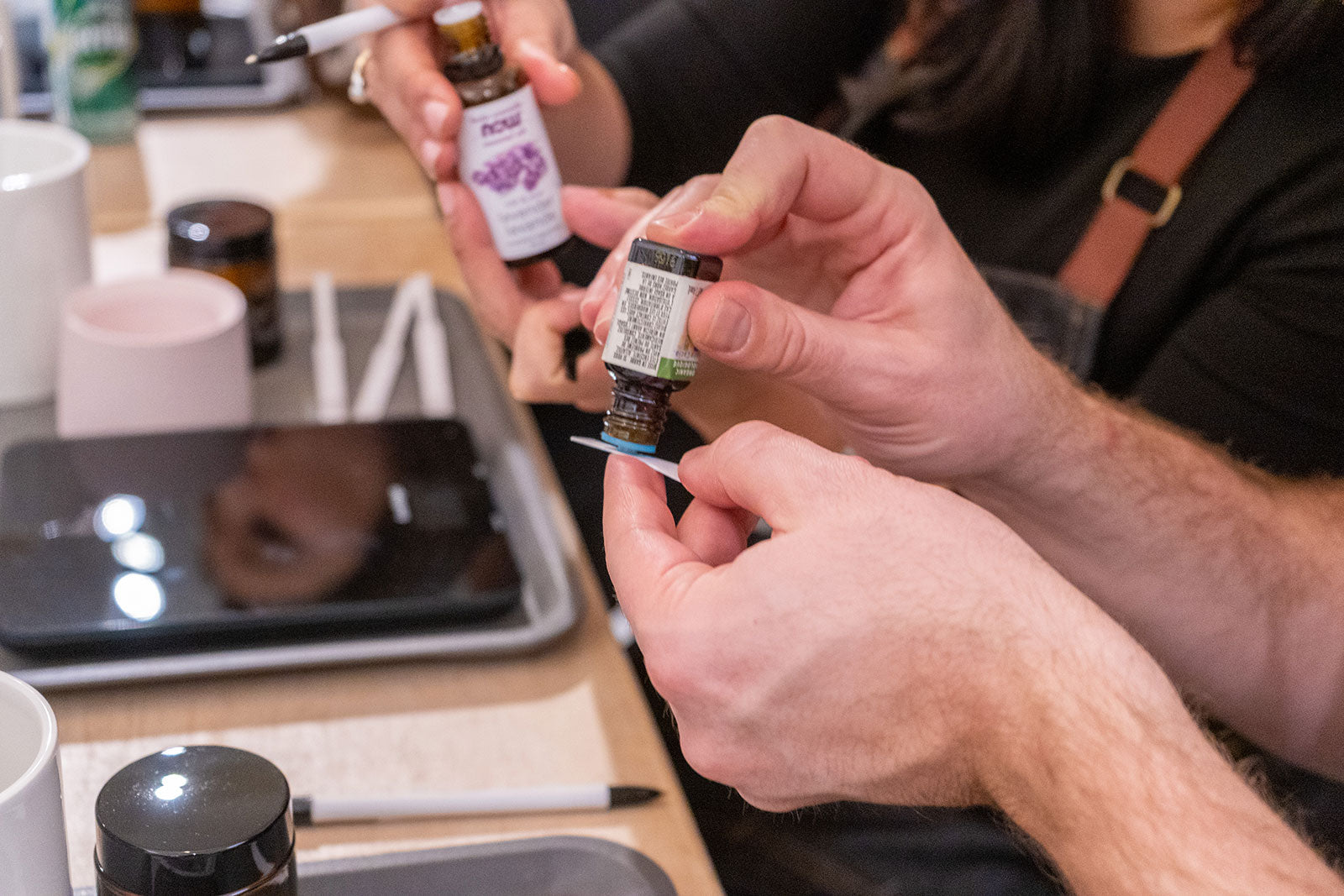 Enjoy a luxurious experience inside your own olfactory world. Guided by our expert candle maker, the workshop begins with an exploration of the artisan’s curated collection of pure essential oils - a tool kit of base scents from sandalwood to rose to bergamot, and everything in between. Next, you’ll design and create a distinct fragrance that speaks to your personality. Warm, inviting, confident, refreshing, or sensual- your fragrance is sure to be a reflection of what you love, a marker of your mindset at this moment in time. Discover what you are truly drawn to and let it live within a handcrafted, concrete vessel.