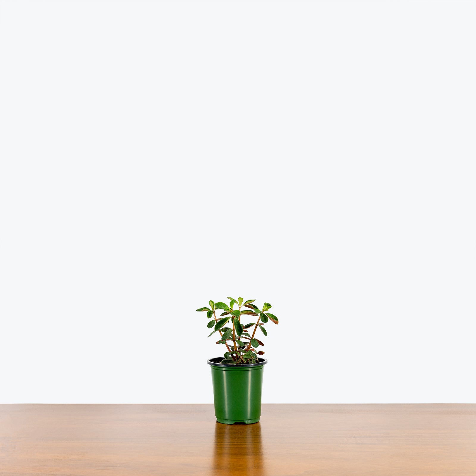 Peperomia Verticillata 'Double Duty', aka Red Log Peperomia, has dark green leaves featuring subtle veining and contrasting bright red undersides, hence its common name. This variety is relatively easy to take care of and doesn’t grow too big, staying in a more compact, shrub-like shape. They are also generally safe to keep around our furry friends, although we always advise against letting your pets munch on your plants too much.