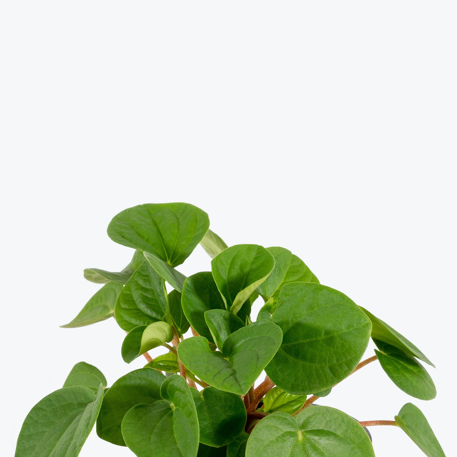 Peperomia Rana Verde, aka Peperomia albovittata 'Rana Verde' or Rippled Chinese Money Plant, is a Peperomia hybrid that is often confused with other varieties. With a fairly compact growth structure, this unassuming stunner produces ovate, soft green leaves that have an embossed texture, and contrasting orange stems. Like other peperomias, it is non-toxic, making it safe to keep around your furry friends.