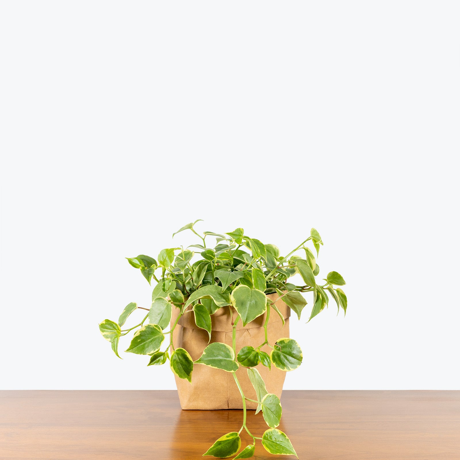 Peperomia Scandens Variegata, aka the Cupid Peperomia, is a trailing variety of Peperomia with beautiful heart-shaped leaves that are pale green with cream variegation along their borders. Although they look delicate, the plant is actually quite robust and resilient, it just needs the proper lighting and watering in order to produce its trailing foliage. Like other Peperomias, the Peperomia Scandens is non-toxic, making it safe to keep around your furry friends.