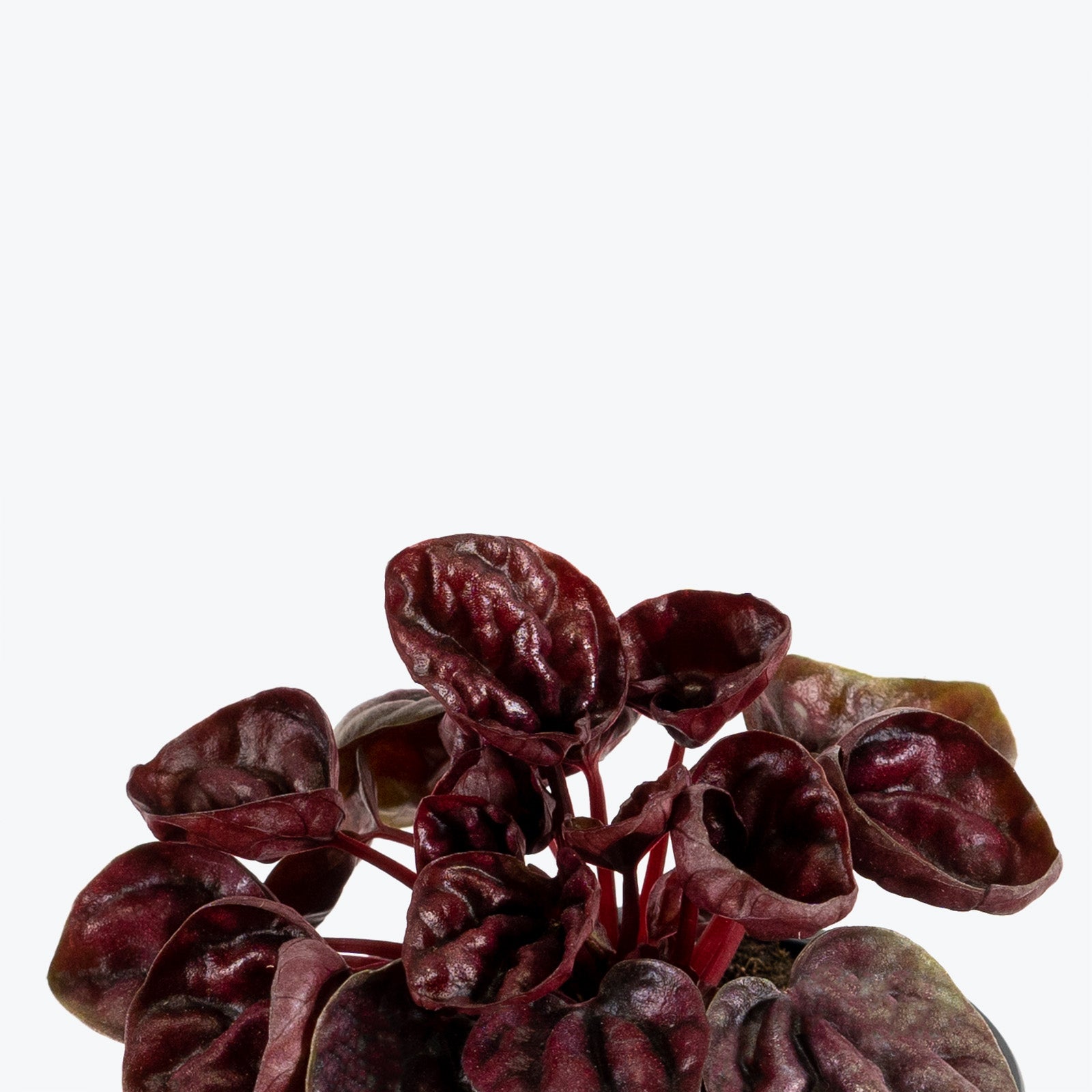 Peperomia Schumi Red, aka Peperomia caperata 'Schumi Red' or Peperomia Red Ripple, is a species of flowering plant in the family Piperaceae, native to Brazil. This variety has deeply ridged, heart-shaped leaves coming in an eye-catching deep red, and narrow spikes of white flowers. Like other Peperomias, it is non-toxic, making it safe to keep around your furry friends.