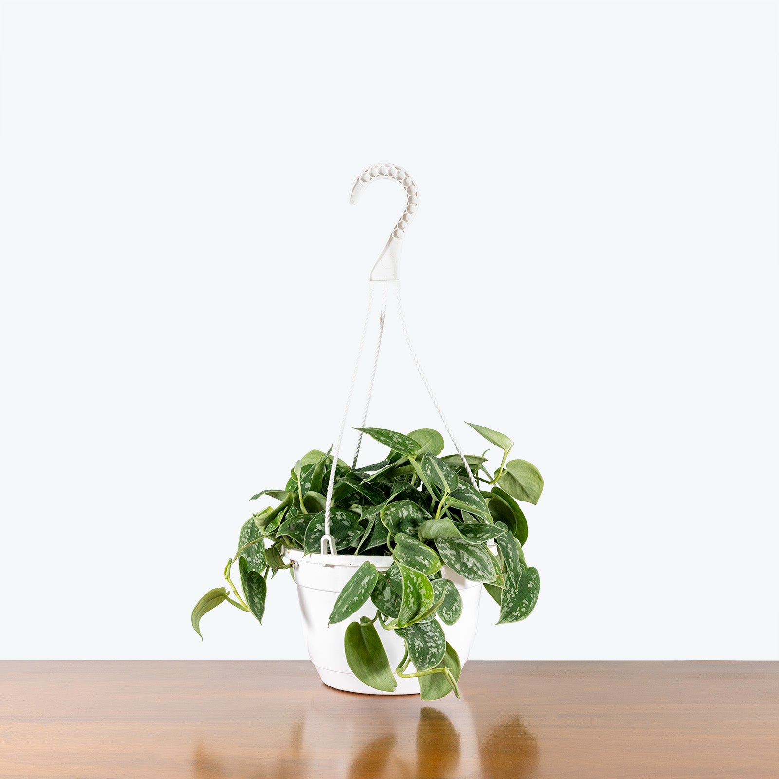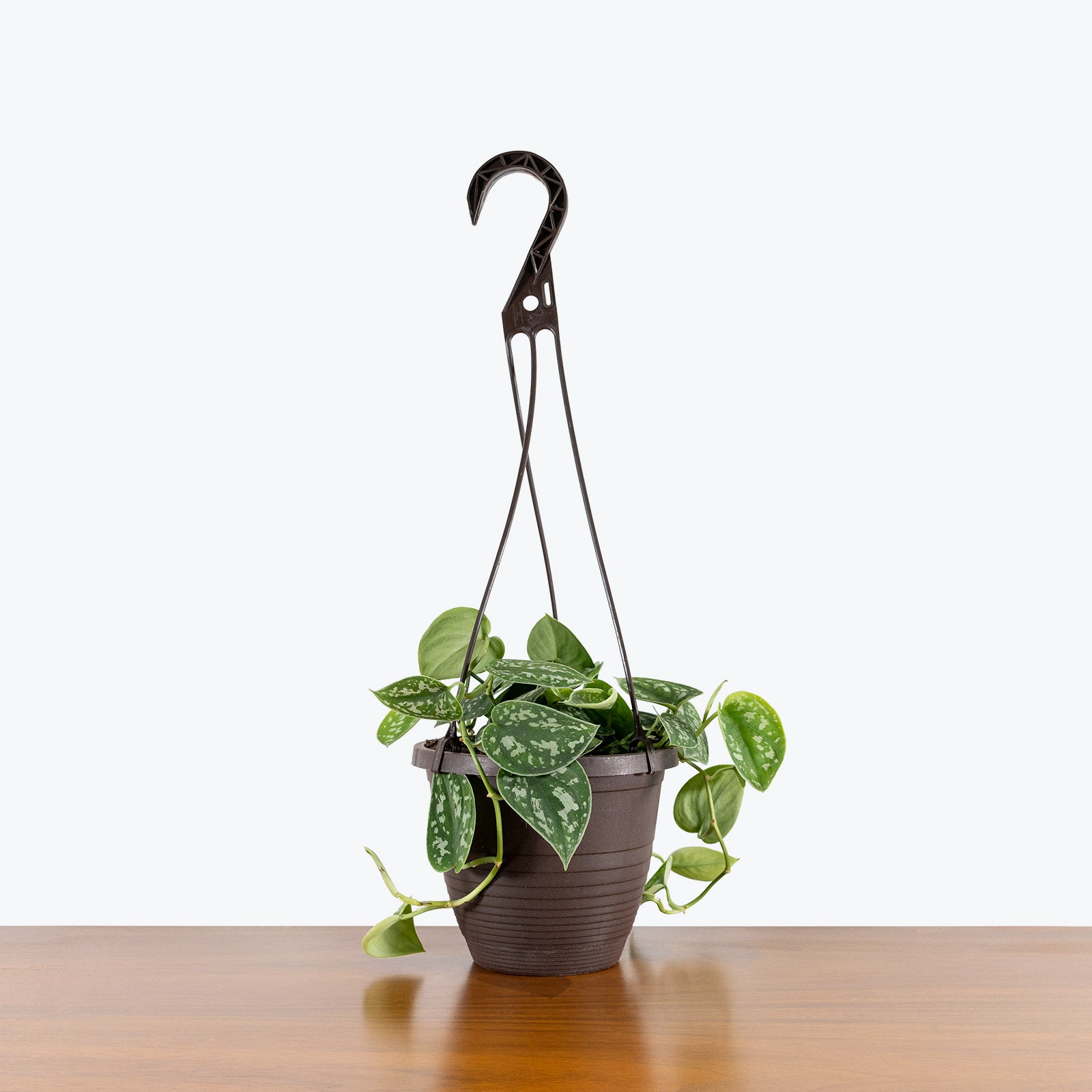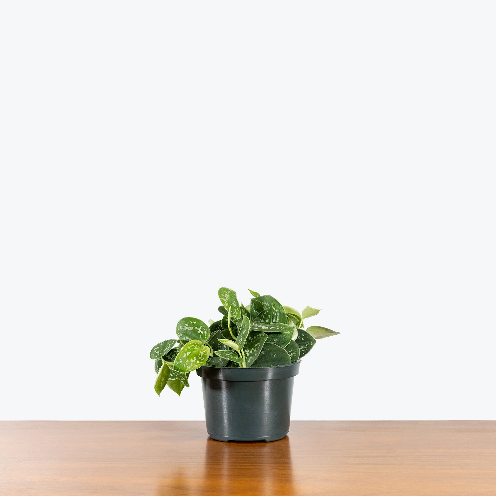 Scindapsus Pictus 'Argyraeus', commonly known as the Silver Pothos, is a popular and visually striking houseplant. It is celebrated for its heart-shaped, velvety leaves that are a deep green colour with splashes of silver variegation. The silver spots and streaks give the leaves a shimmery appearance, making them look as though they have been speckled with paint. This vining plant is perfect for adding a touch of elegance to any indoor setting, whether displayed in hanging baskets, on shelves, or trained along a trellis or moss pole. Its ease of care and attractive foliage make it a favourite among both novice and experienced plant enthusiasts.